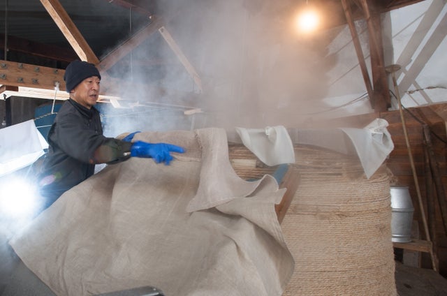 ふるいに掛け、丁寧な麹造りに励んでいます。