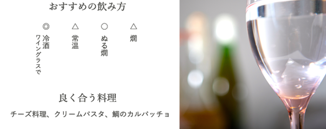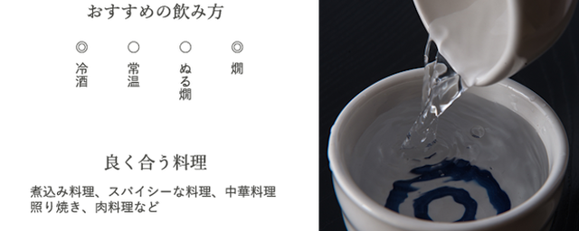 熱燗にすると、味わいの幅が広がり、料理とのペアリングにぴったりな1本です。