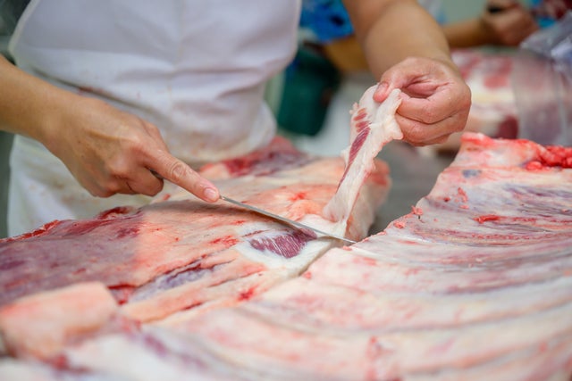 屠場、セリ場、肉屋で