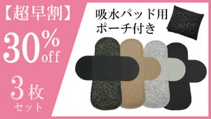 <追加>【超早割】30%OFF 究極の無縫製サニタリー吸水パッド 3枚 (ポーチ付き)