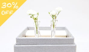 - ガラスを加工し、 生花を生けることができるアクセサリー