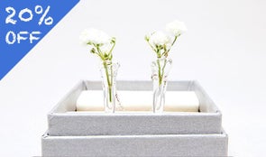 どちらも花の魅力を惹き立てるシンプルな形、透き通ったガラス越しに花の茎まで魅せるデザイン。