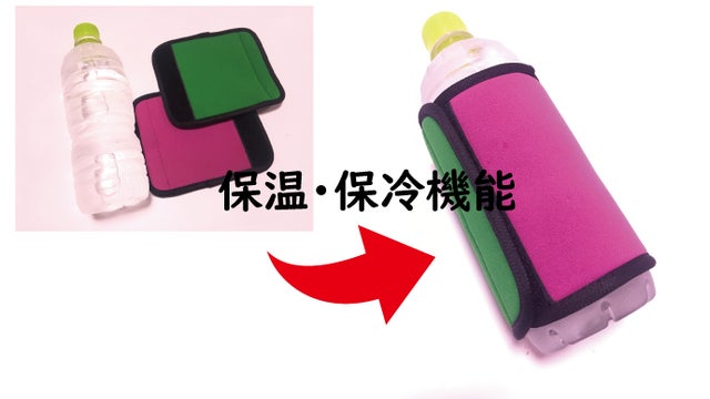 ネオプレーン素材に包まれて外気に触れる面積が減ることで保温・保冷効果が生まれます。※500mlのペットボトルに使用する場合2枚のハンドルラップが必要です。