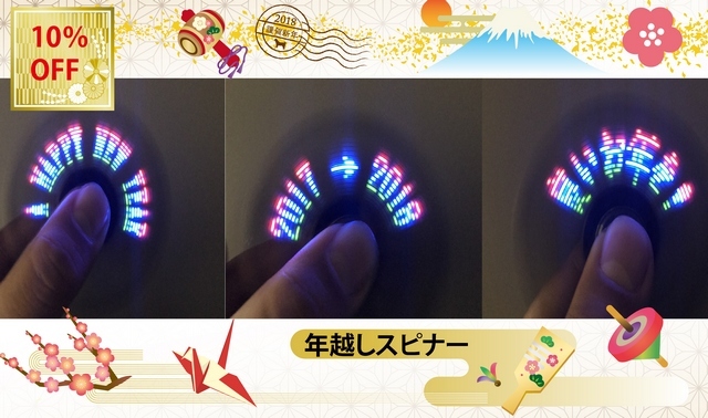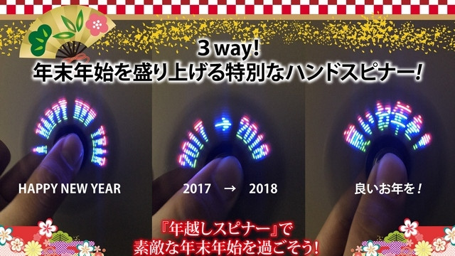 このハンドスピナー、『年越しスピナー』は本来の手持ち無沙汰解消グッズ、ハンドスピナーとしての用途はもちろん、3種類のLEDメッセージ表示することが出来ます。