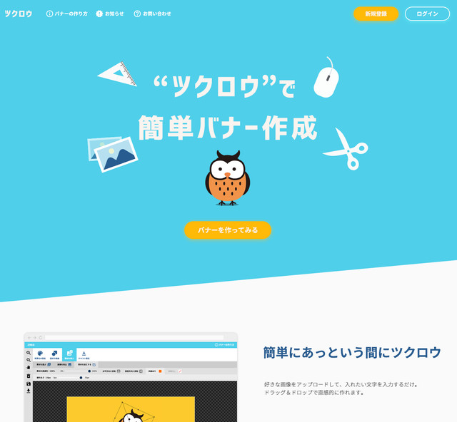 『ツクロウ』は、Photoshopやillustratorを触れなくても、ブラウザ上でバナーを自分でデザインしてつくれてしまうサイトです。