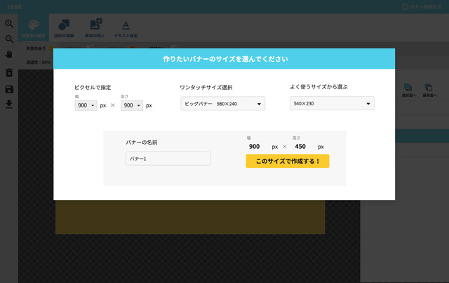 直感的に使用方法が分かるので、誰でもスイスイバナーが作れます。