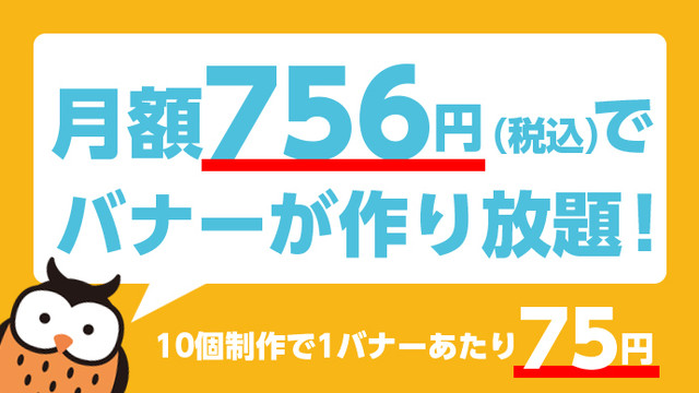 さらに、料金設定は複数プランご用意。1度きりの利用もOKですし、月額制に申し込めばどれだけバナーを制作しても月々756円(税込)です。