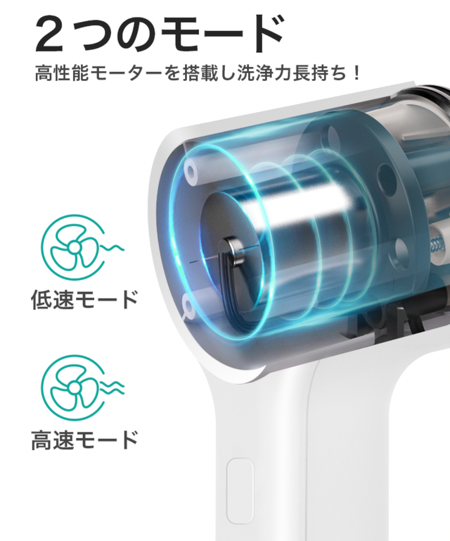 低速と高速の2モード切り替えが可能で、キッチン、車、シンク、コンロ、ガラス窓、バスルームなど、あらゆる場所で大活躍します。実用性とデザイン性の美しさを兼ね備えたスッキリお掃除アイテムです♪