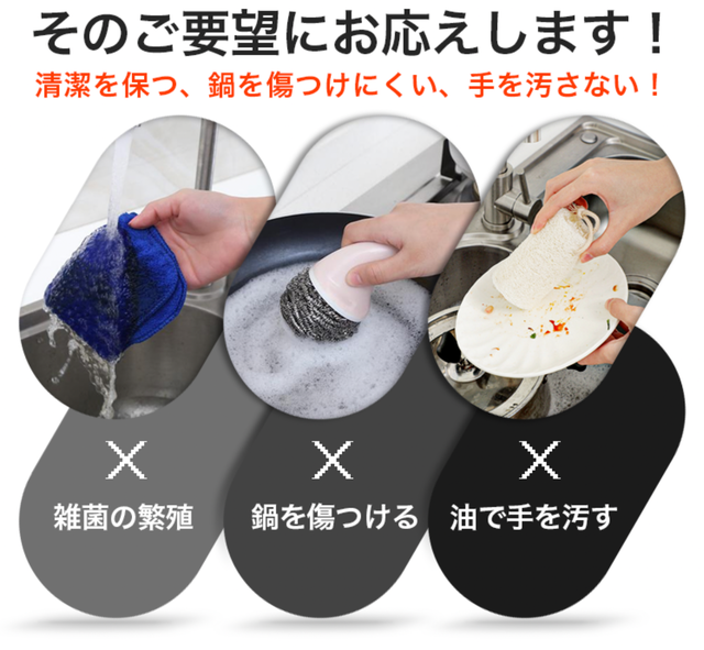 ・スポンジを使わず、手を汚さず食器洗いができたら良いのに!