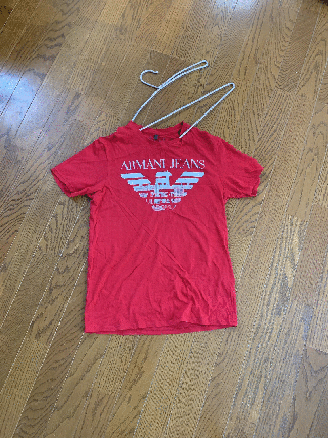 Tシャツの首元を伸ばさずに掛けることが出来ます。