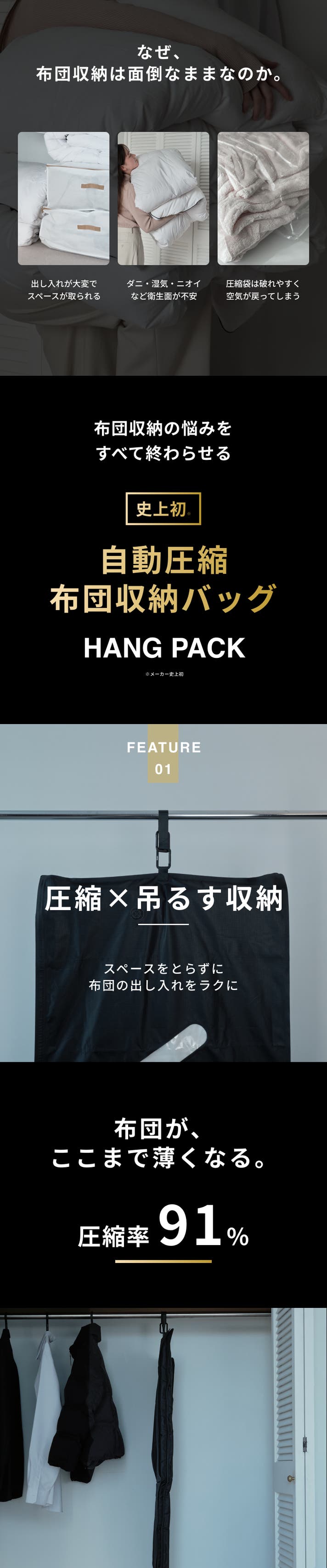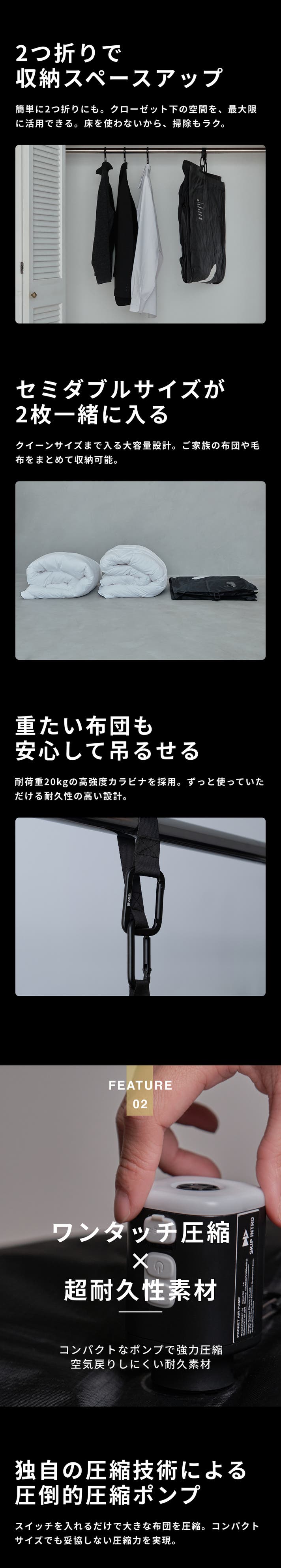 - 【強力圧縮×吊るす収納】出し入れも掃除もしやすくなるこれまでにない布団収納ソリューション