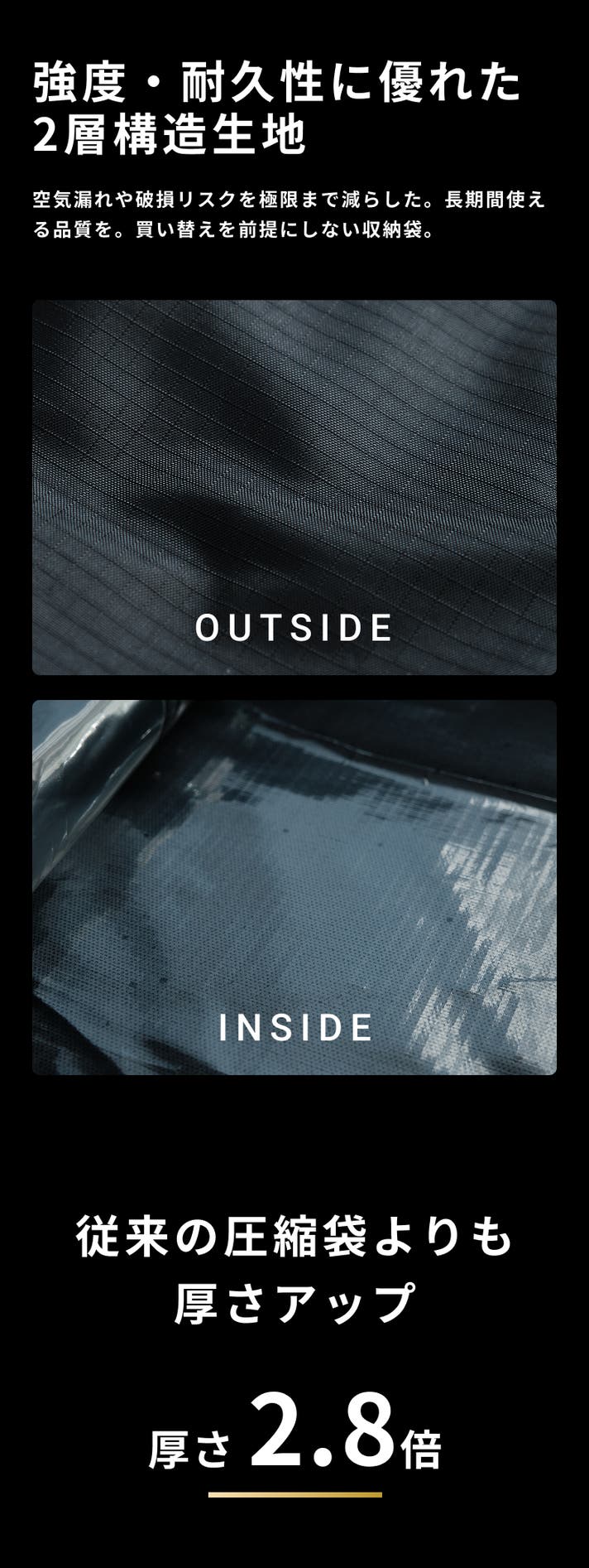 - 【大容量×耐久性】セミダブル2枚が入る大容量なのに、空気が入りにくく破れにくい頑丈な設計。