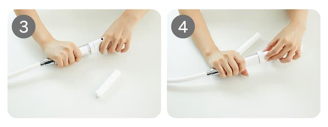 ホース内のシリコーンリングが紛失しないように気をつけます。