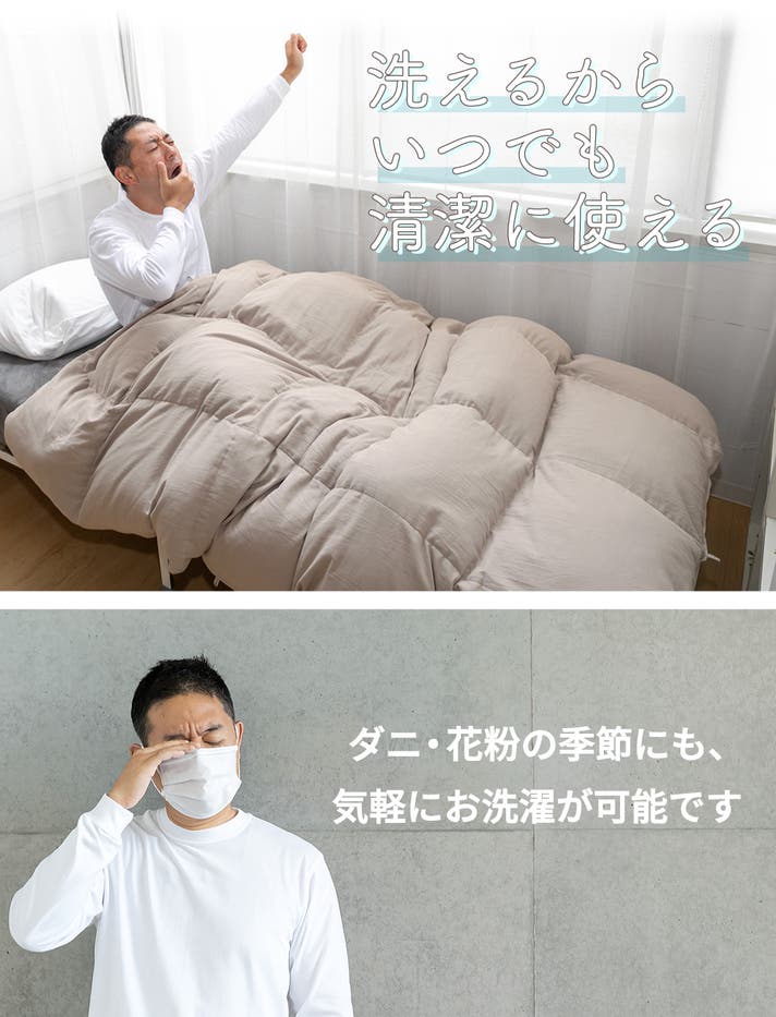 - 【カバー不要】独自構造により羽毛布団なのに掛けカバーが不要で手間いらず!