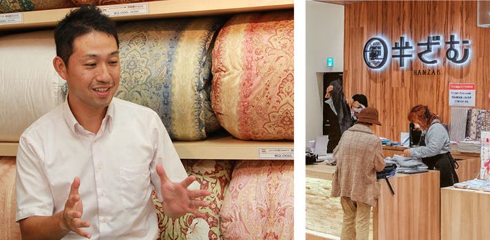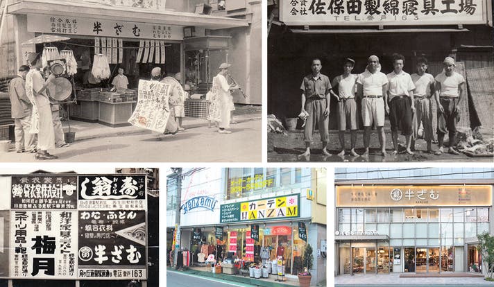 半ざむの布団屋としての前身は、明治9年(1876年)創業の「大和屋」という呉服店および雑貨店。当主は範左ヱ門(はんざえもん)といい、代官名主を務め人望が厚かったこともあり、「はんざえもんさんの店」として親しまれました。その後「大和屋」は「佐保田商店」となり、寝具・雑貨を取り扱うようになりました。