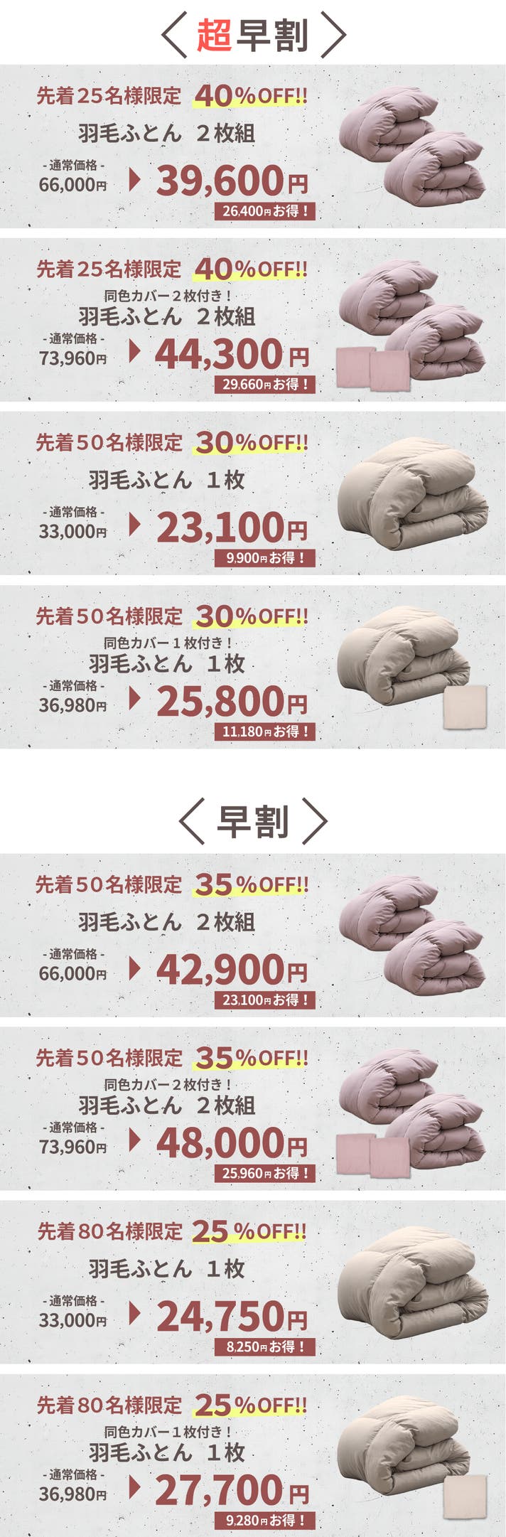 【超早割 40%OFF】羽毛ふとん 2枚組