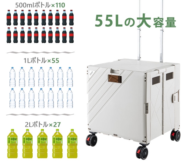 アウトドアにも、まとめ買いにも嬉しい55Lの大容量設計。スーパー袋も要らず環境にも優しい。蓋を閉めてその上にドリンクを置く、という使い方まで可能です!