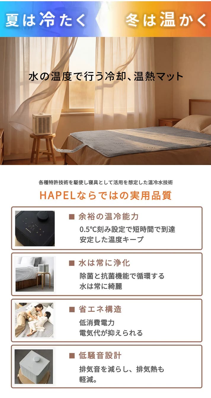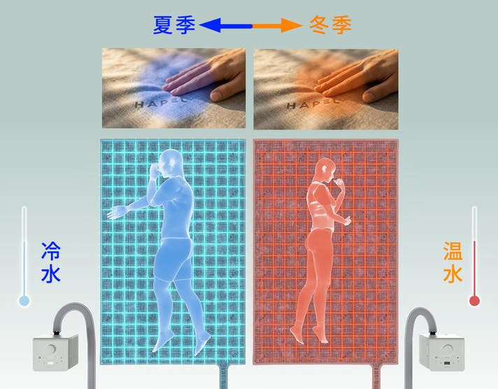 - 電気式ではなく、水で温度をコントロールするので優しい快適温度