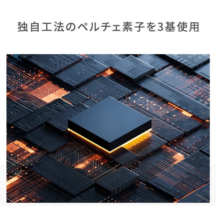壊れやすいと言われたペルチェ素子も独自の製法で高効率化に成功し、ペルチェ素子に加わる負担を大幅に低減。結果、長寿命のペルチェ素子機器が生まれました。