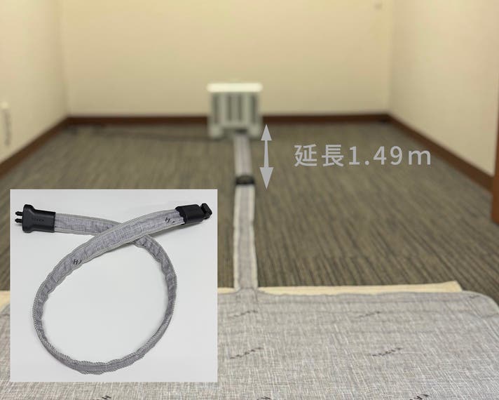 それでも機器音が気になる場合はオプションの延長ホースで寝床から本機器を遠く離すことが可能です。