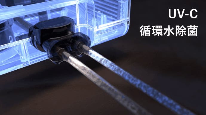 循環する水は光除菌のUV-C(深紫外線)による除菌を行います。