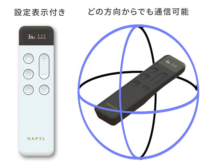 リモコンを本体方向に向けることなく、どの方向からもコントロールが可能です。