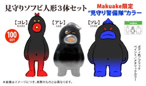 ・『アレ』、『コレ』、『ソレ』の見守りソフビ人形(Makuake限定 “見守り警備隊”カラー)3体セット。