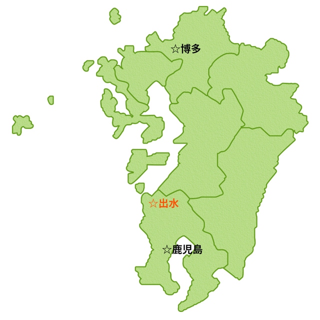 博多駅から出水駅まで九州新幹線で1時間11分、鹿児島空港からシャトルバスで1時間25分です。