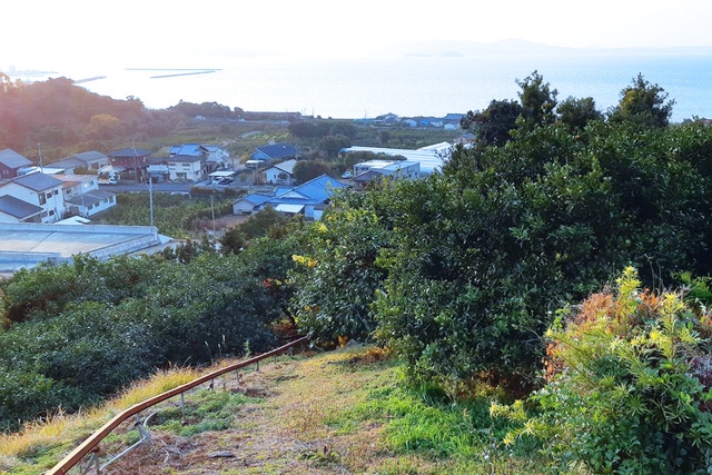 針忠みかん園は、潮風が吹き上げる山の斜面にあります。