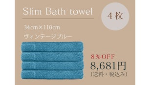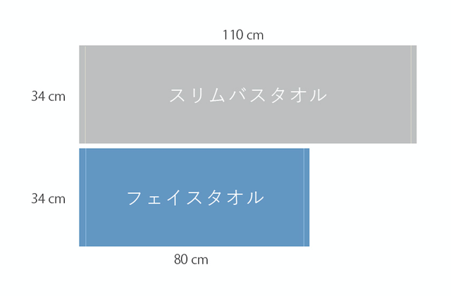 サイズは、スリムバスタオル/フェイスタオルの2サイズ展開です。