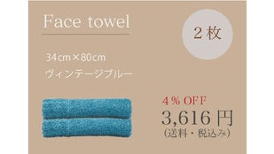 【早割4%Off】フェイスタオル ヴィンテージブルーカラー 2枚SET