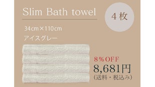 【早割8%Off】スリムバスタオル アイスグレーカラー 4枚SET