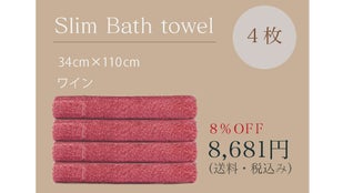 【早割8%Off】スリムバスタオル ワインカラー 4枚SET