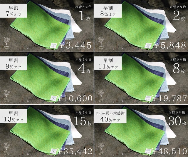この度の「ヴィヒタタオル」ですが、製造において想定以上の工数を要する可能性がございます。 製造可能なタオルの数量とお届けタイミングは慎重に検討しておりますが、リターンの配送に影響が出る場合は事前に活動レポートにて連絡致します。 また、製造において仕様や生地の色が一部変更になるなど、掲載内容に変更が生じる場合にも、お届け前に周知致します。 お客様に快適な生活をお送りいただけるよう、製造・配送に尽力して参りますので、ご支援のほど宜しくお願い致します。 本文中に記載させていただいたスケジュールは、あくまでプロジェクト公開時点の予定です。応援購入の性質上、配送遅延のおそれがございます。 原則として、配送遅延に伴う応援購入のキャンセルはできませんが、リターン配送予定月から6ヵ月を超えた場合には、希望者に限りキャンセルにて対応させていただきます。 ※お客様による住所間違えや記載漏れが原因の場合はキャンセルの対象にはなりません。よくご確認の上ご注文ください。