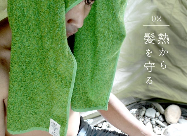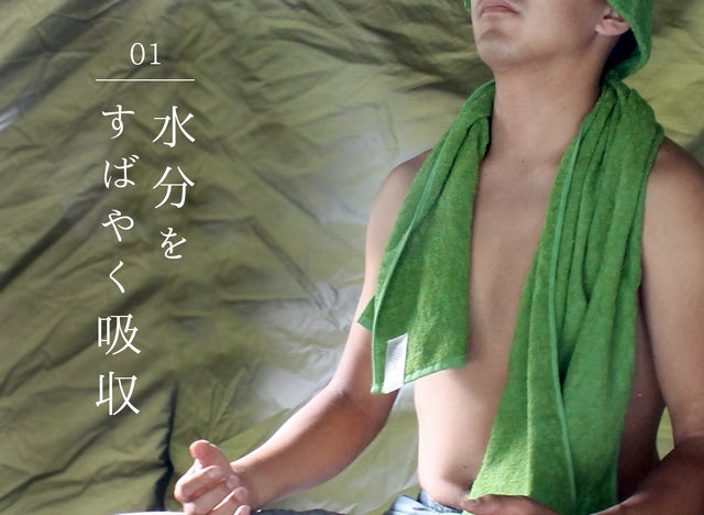 サウナ浴室内は湿気/水気が多く、生地の水気をきるためにタオルを絞ることも度々。「短パイル」の軽量生地に仕上げることで、絞りやすさく水キレの良いタオルの機能性を実現しました。