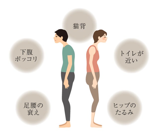 猫背気味だったり、昔はペタンコだった下腹がでてきたり、ヒップがたるんできたり・・・。