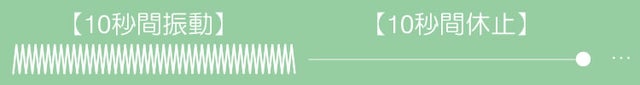 瞬発的に力を入れる時、例えば階段の昇り降りや、立ち上がる際の上半身を支えるための筋肉を鍛えるためのモードです。1秒間の振動中に尿道と肛門をキュッと締めるように力を入れます。3回連続で神藤するので「キュッ・キュッ・キュッと力を入れる→脱力してリラックス」を繰り返します。