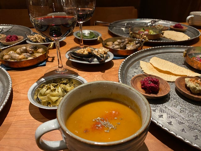 赤坂の裏路地の地下一階にひっそりと2020年6月にオープンしました。コロナ下の影響や個人の諸事情により去年は、ほぼ開店休業状態でしたが、今年に入りここ最近にやっと本格的に営業を再開することができました。全16席/すべてテーブル席、うち個室1/4名テーブル、個人まりとした隠家タイプの落ち着いた広さです。トルコから輸入したモスク使用のシャンデリアや銀皿を用いたモダンで異国情緒な内装です。アットホームな雰囲気でお待ちしてます。