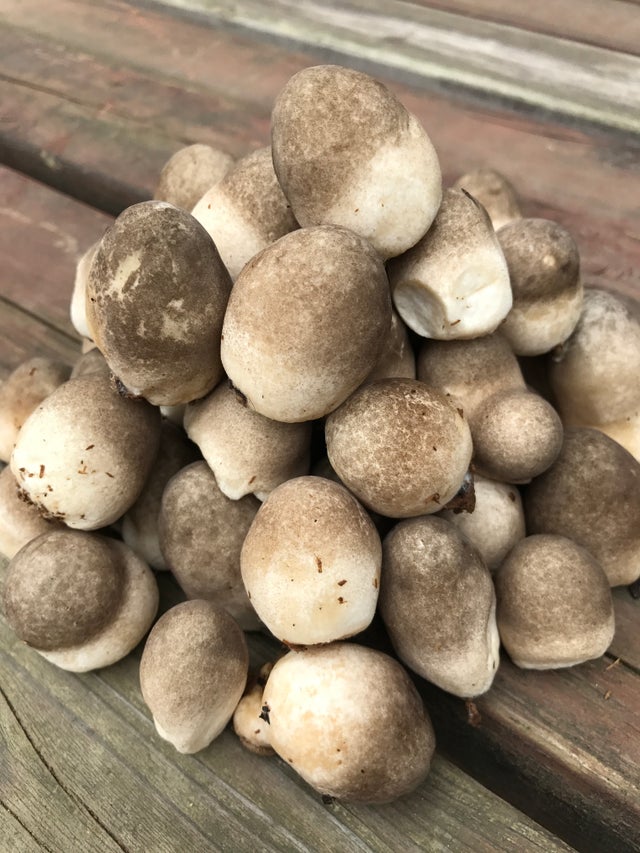 鳩の糞と組み合わせる有機肥料にキノコの廃菌床を使います。そこで、その相棒として東南アジアでよく食べられてる袋茸を栽培することにチャレンジしました。以前ベトナムで取れたての袋茸を食べて大変美味しく感動しましたのが理由です。ところが袋茸は採取してから2,3日後にすぐ収縮してダメになってしまい、市場にはほぼ加工品としてしか流通しない困り者。また、その難しい栽培方法から日本で栽培している農家さんもごく僅かです。これもまた、大変苦労のかかる食材を選んでしまったものです。いまだ完全な生産体制は取れてませんが、将来には通年でフレッシュな袋茸を皆さんに提供できると思います。