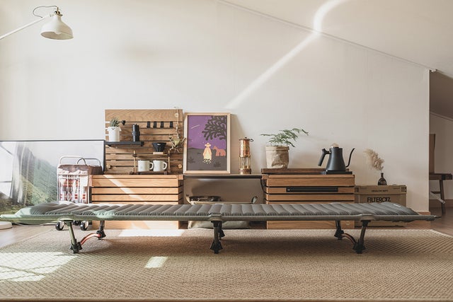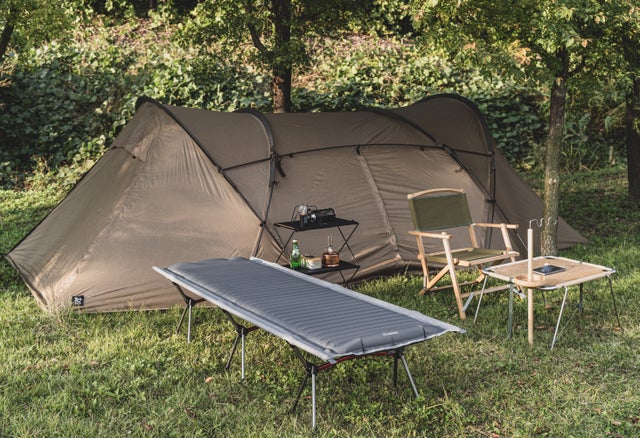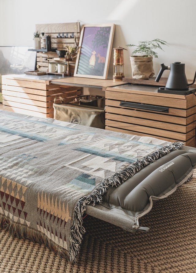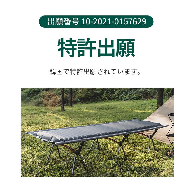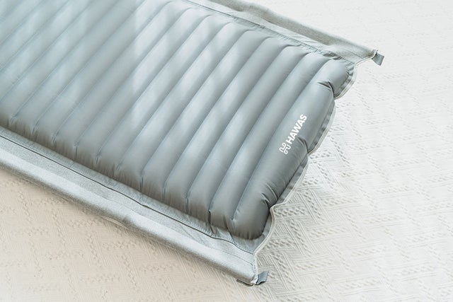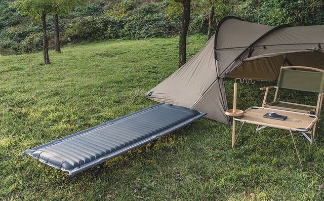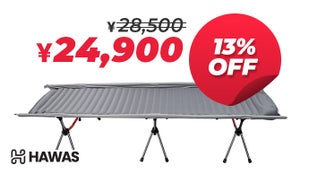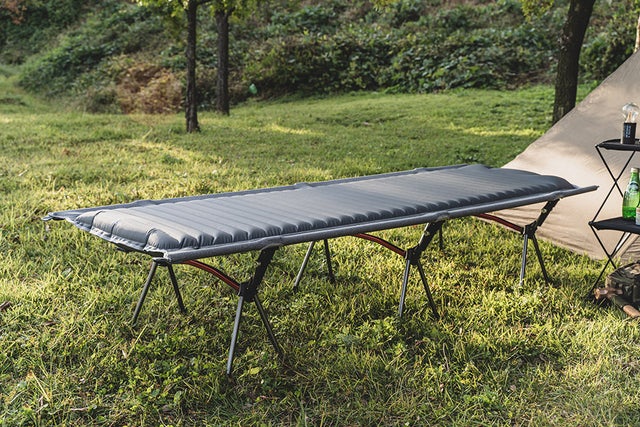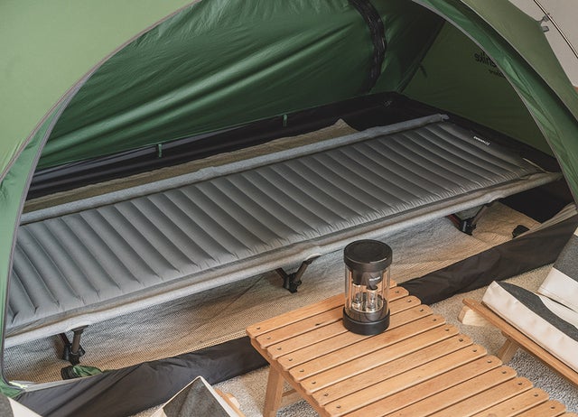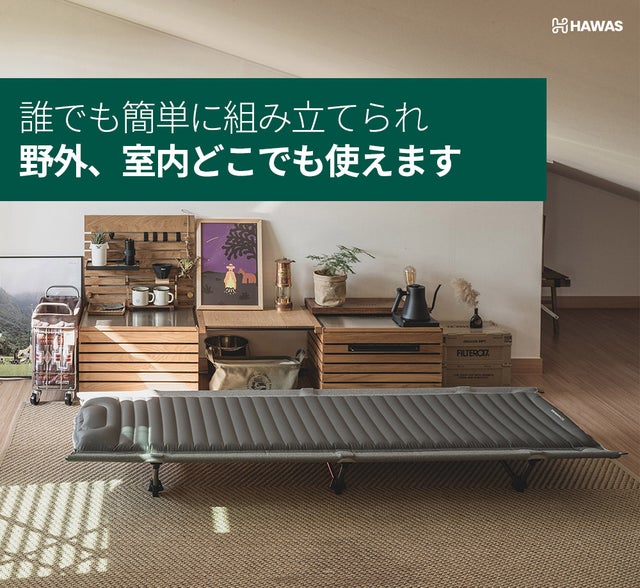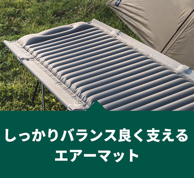 HAWASキャンプベッドのエアーマットは普通のキャンプベッドと違ってバランスの取れたクッション感で快適にお寛ぎいただけます。