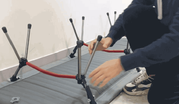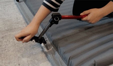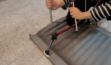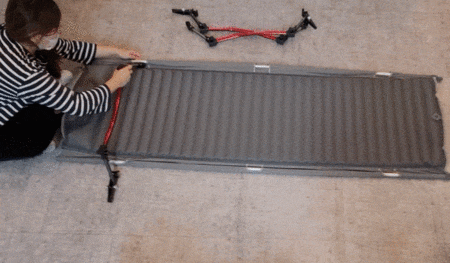 レッグフレームをエアーマットに取り付けて下さい(尻尾の方から挟んでください)