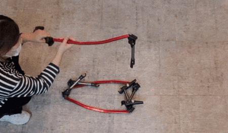 レッグフレームのハンドルを動画のように押してください。カチッという音がします。