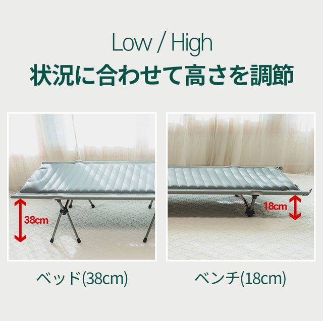 - 片手で運べる超軽い、コンパクトな組立形ベッド!