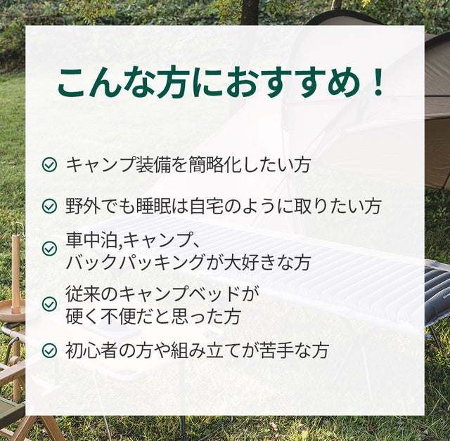 - どこでもマイホームのような心地よさ、ふわふわのエアーマット!