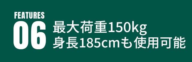 耐荷重テストの結果成人男性二人、合計177kgの重さでも安定して支えることが出来ましたが、安全のため150kgまでの最大荷重をお勧めしています。
