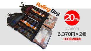豊富な収納力と防水生地にセパレートタイプポーチで耐久性に優れていて、出張、旅行、お出かけまで様々なシーンでマルチに使えるローリングポーチです。