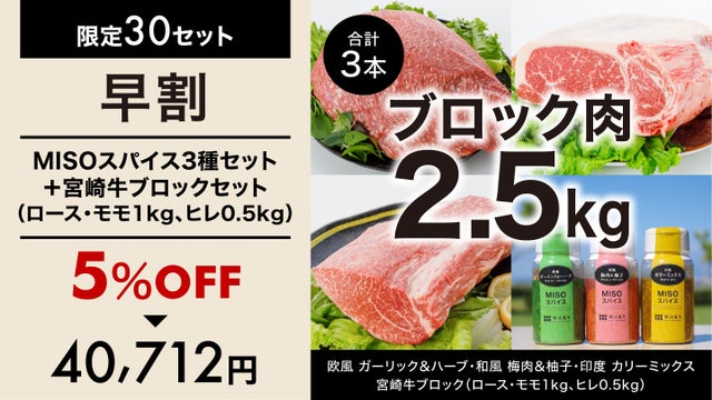 【早割】みそスパイス3種+ブロック宮崎牛2.5kgセット