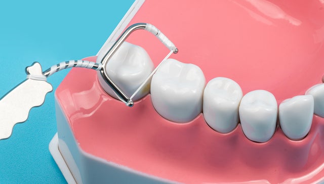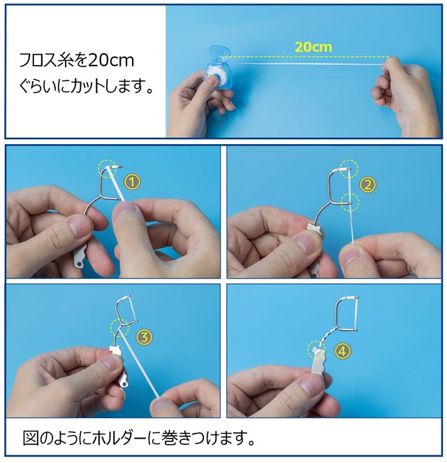 - テープ状のフロス糸で歯間の歯垢を徹底的に除去。