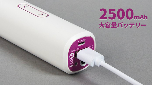 2,500mAhの大容量バッテリーを搭載したため、「HDB」の動作時間を保証するだけでなく、電子デバイスの持ち時間も延ばしてくれます。バッテリー不足による不便はありません。