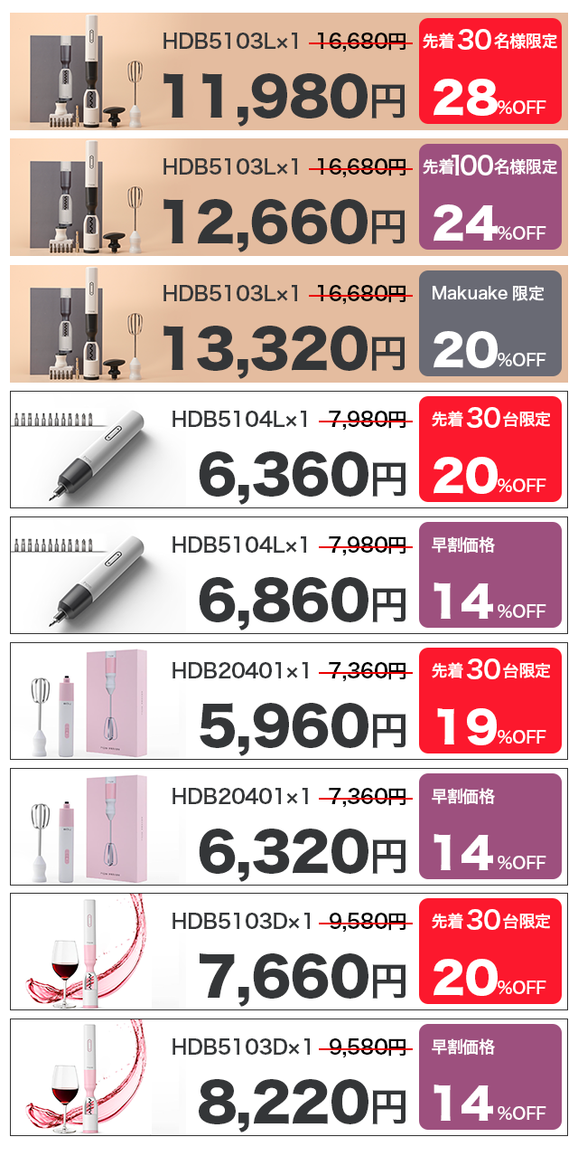 【超早割・19%OFF】電動泡立て器「HDB20401」